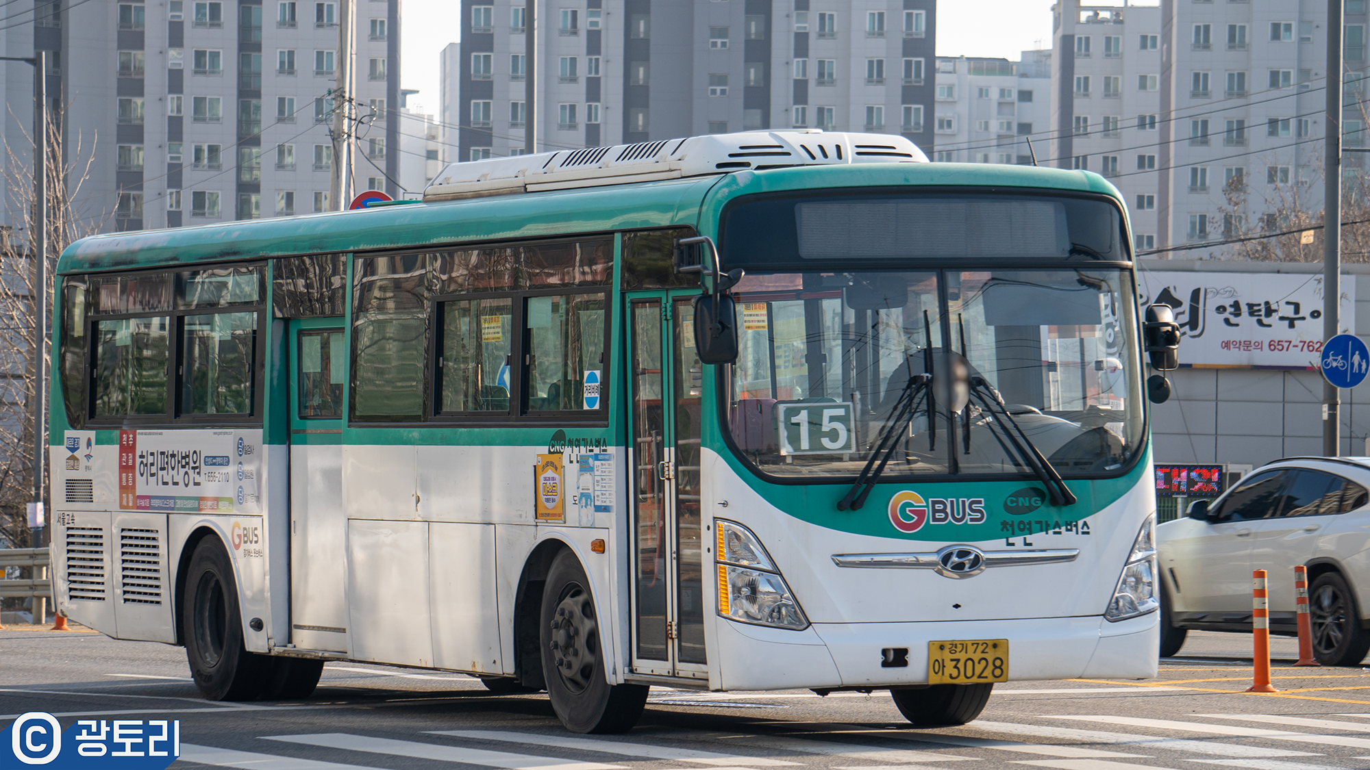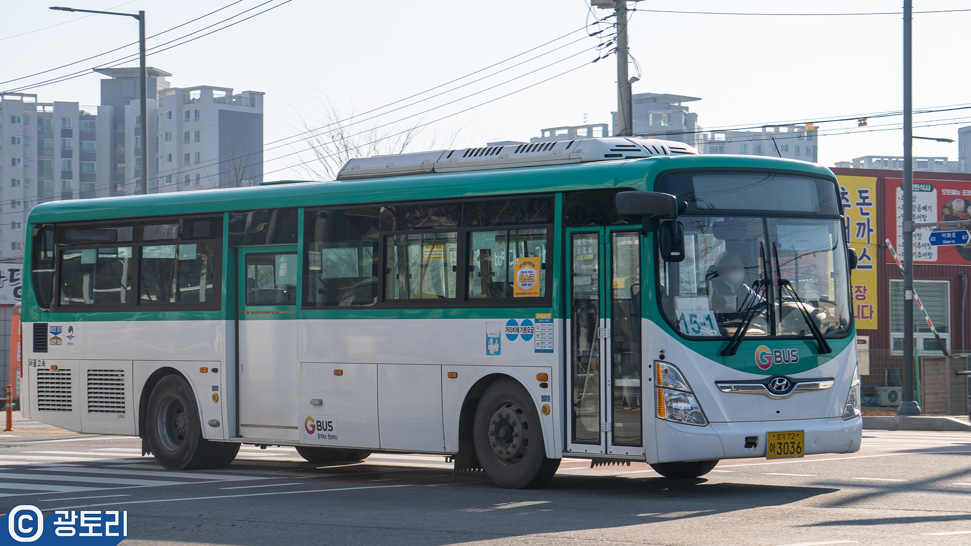 어째서인지는 모르겠지만 3028호는 스티킹을 다 때고 운행하고 있었습니다. 대차 하려고 하는 것일까요. 15-1번은 15번의 차량이 부족해서 인지 3036호 공용 예비 차량이 대신 운행하고 있는 모습입니다.
