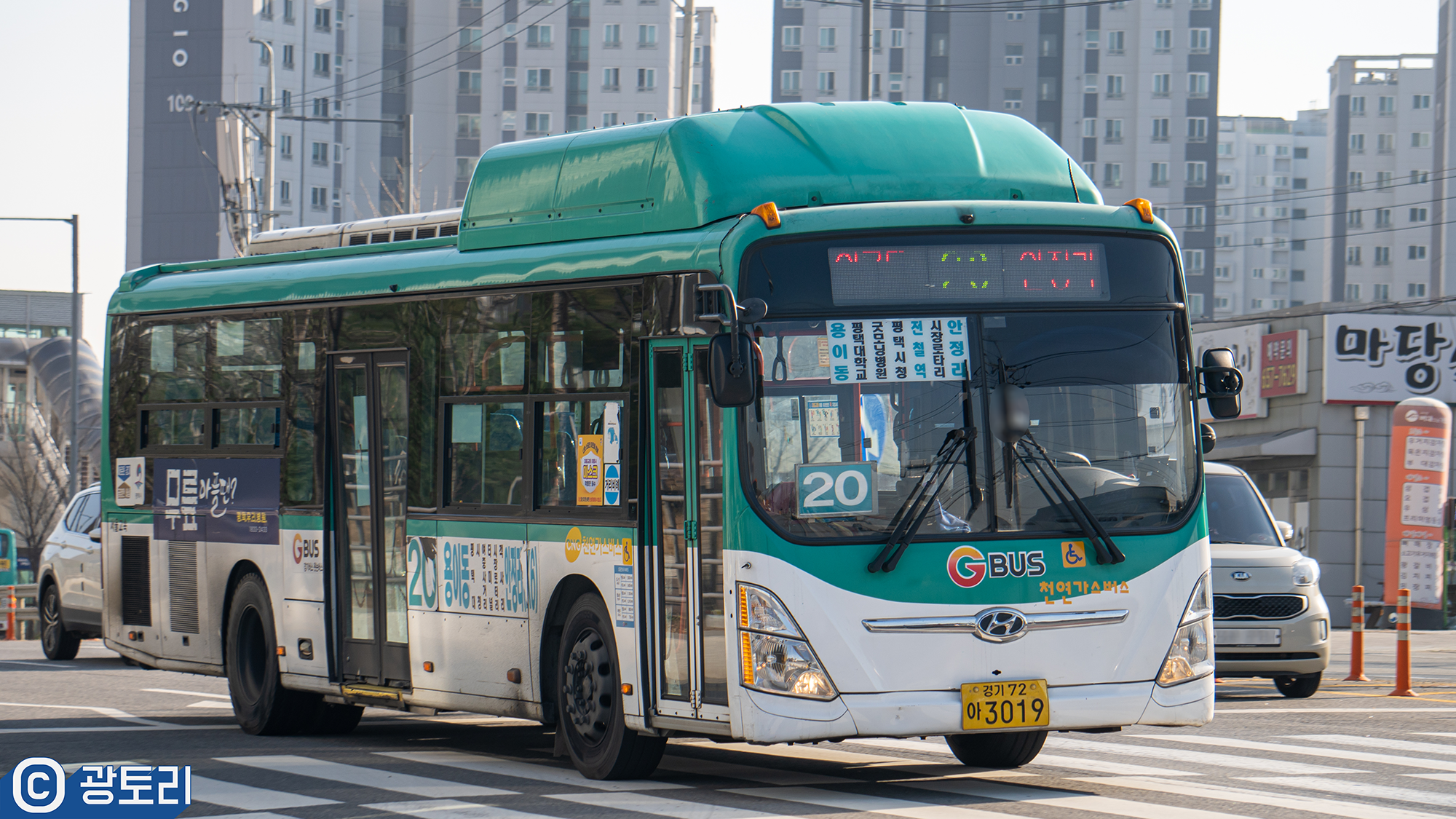평택 3사가 공동 배차하는 노선이 올해 4월에 싹 사라지면서 평택의 마지막 공동 배차 노선이 된 20번입니다. 팽성 - 평택 시내 수요가 엄청나기 때문에 출퇴근 시간마다 사람이 엄청 많은 모습을 볼 수 있는 노선입니다.
