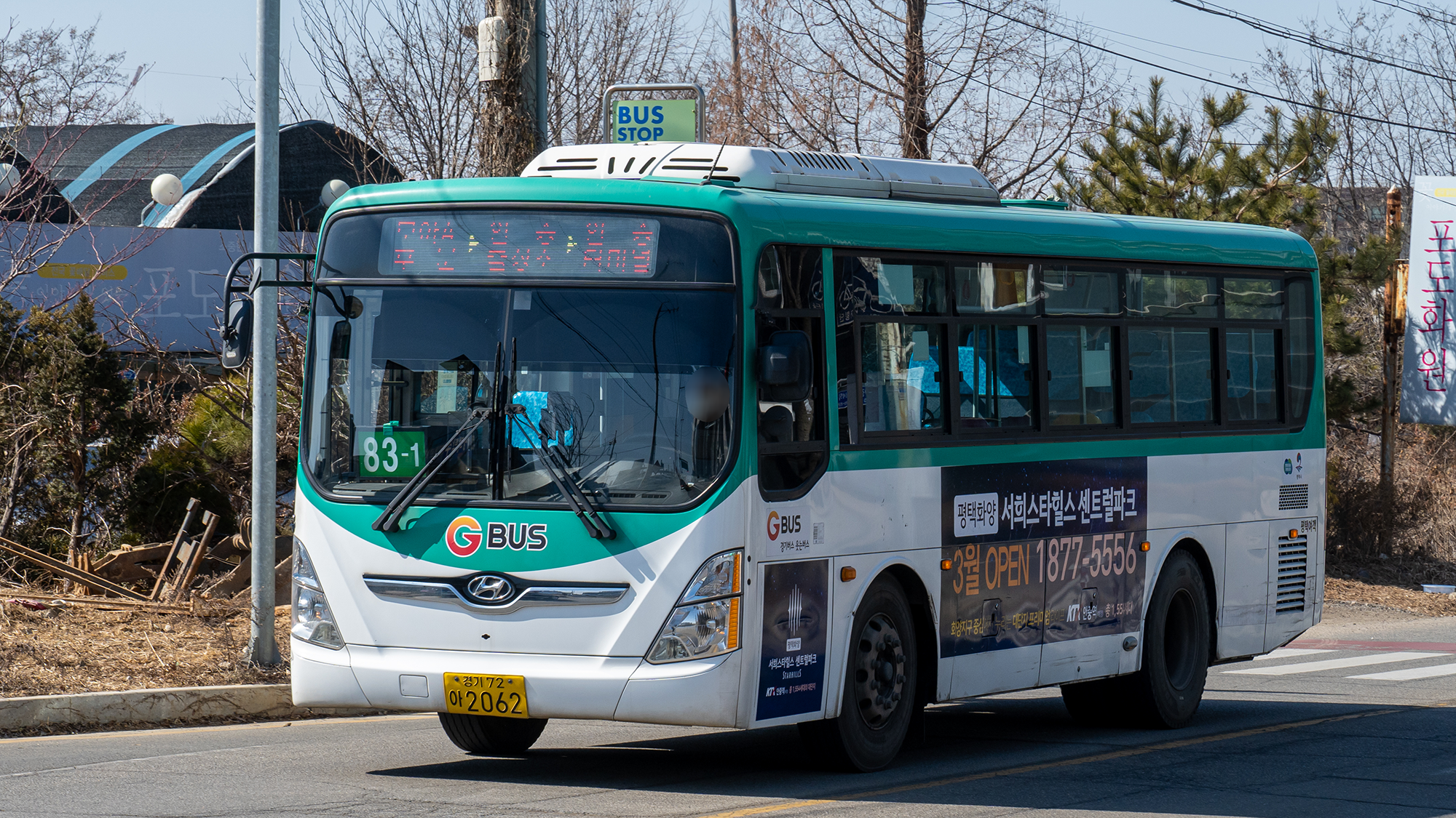 안중에서 원정리 마을을 이어주는 83번대 노선입니다. 2009호와 같이 출고된 20년식 디젤 그린시티로 23년 3월 기준으로 안중 지선에 들어가는 노선 중 가장 최신 차량이자, 평택의 마지막 디젤 차량이 아닐까 싶습니다.