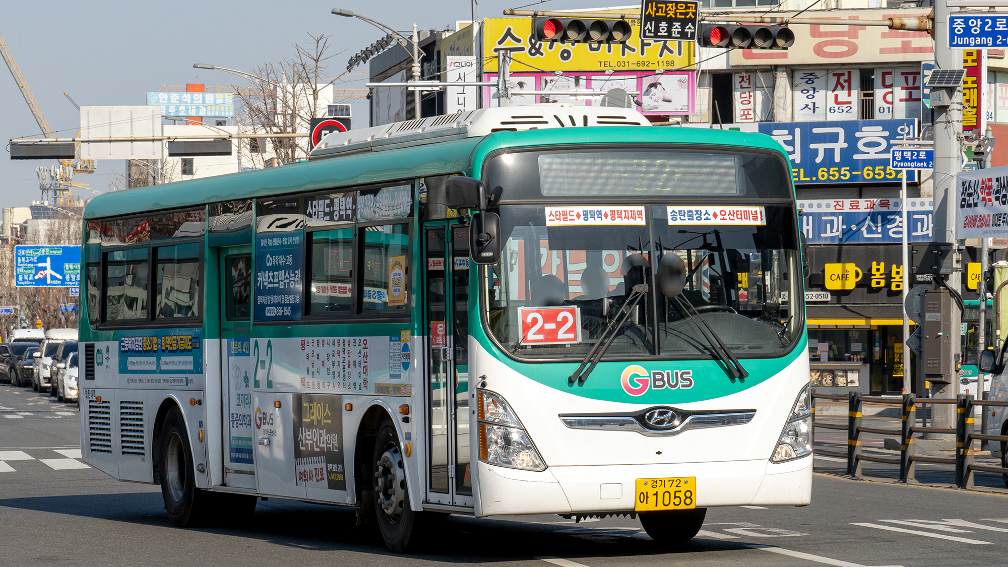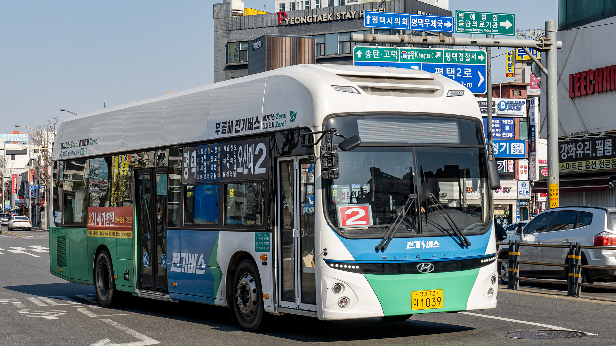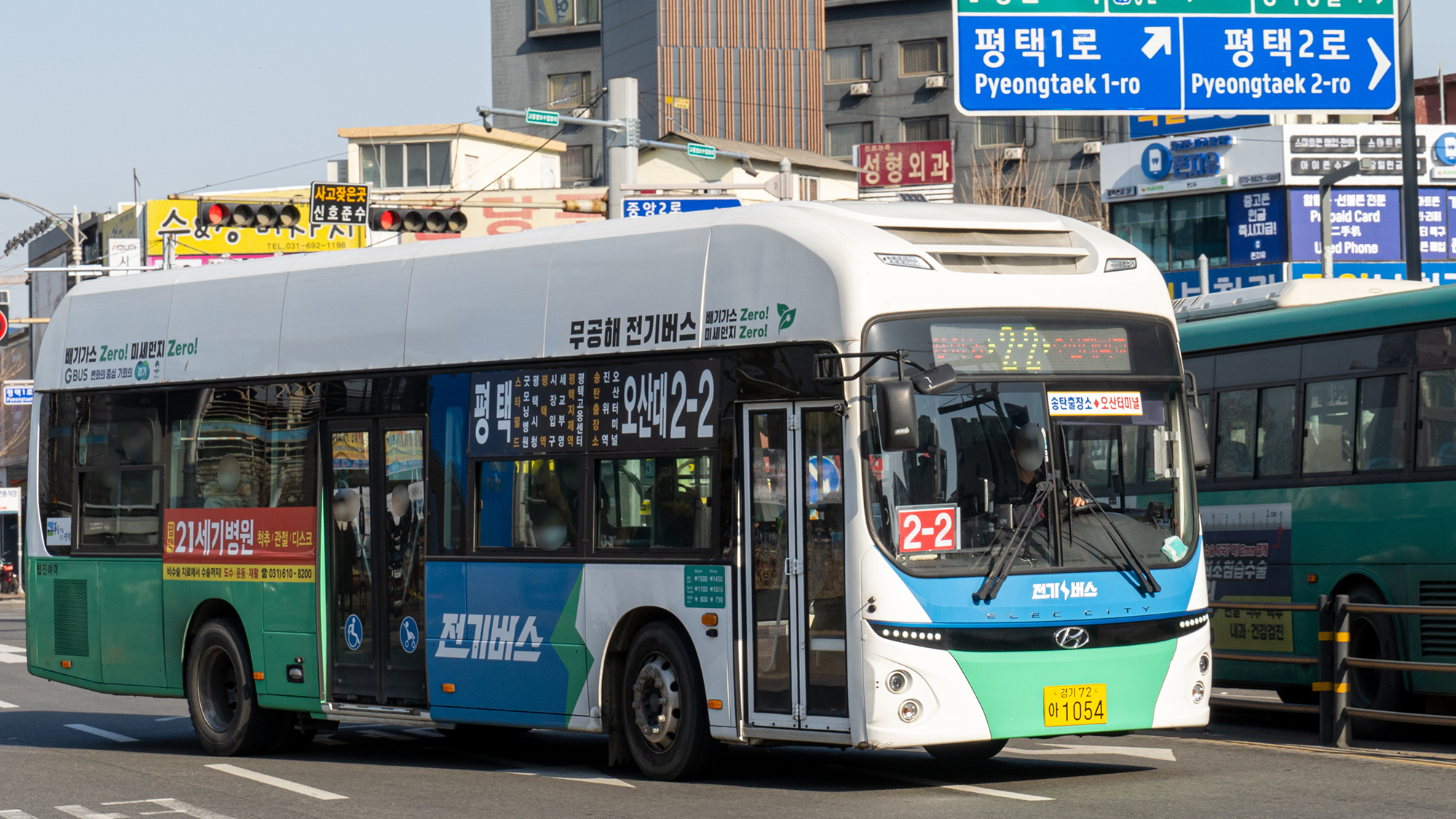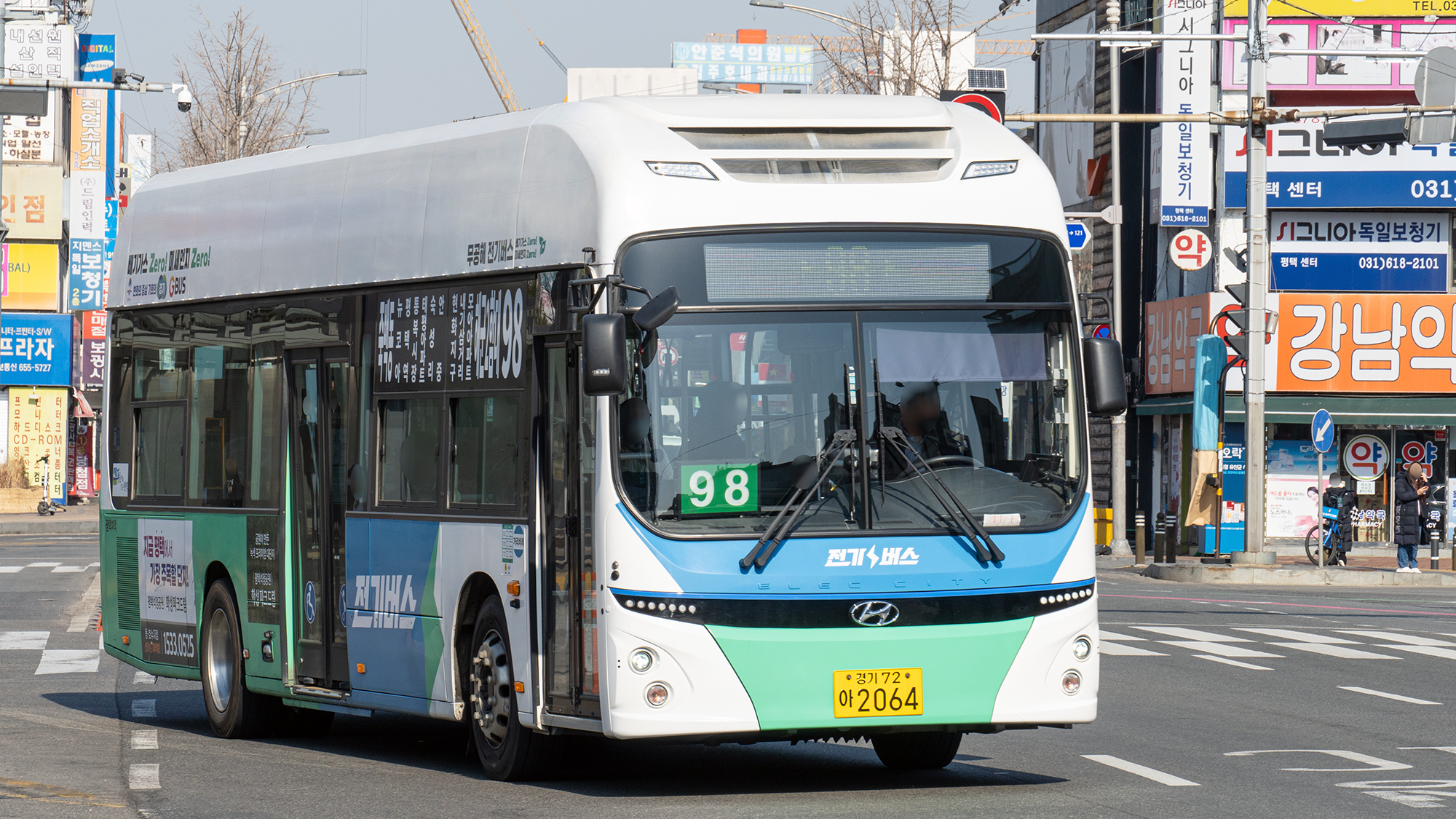 2번 시리즈는 신차 몰빵 대상 노선이었으며, 현재는 일렉시티 우선 투입 노선이라고 합니다. 평택에서 시내버스 수요 1, 2등은 2번과 2-2번이라고 하니, 할 말은 없긴 합니다. 또, 승객이 많아 입석 승객을 위한 힙레스트 옵션이 있는 일렉시티를 투입하는 것이 최고의 선택이기도 하죠. 장거리를 가야 하니까 변속이 필요 없는 전기버스가 기사님에게는 또 좋은 장점이 되고요. 현재 기준으로 일반 차량과 전기 차량은 약 2:1 비율로 운행하고 있습니다.