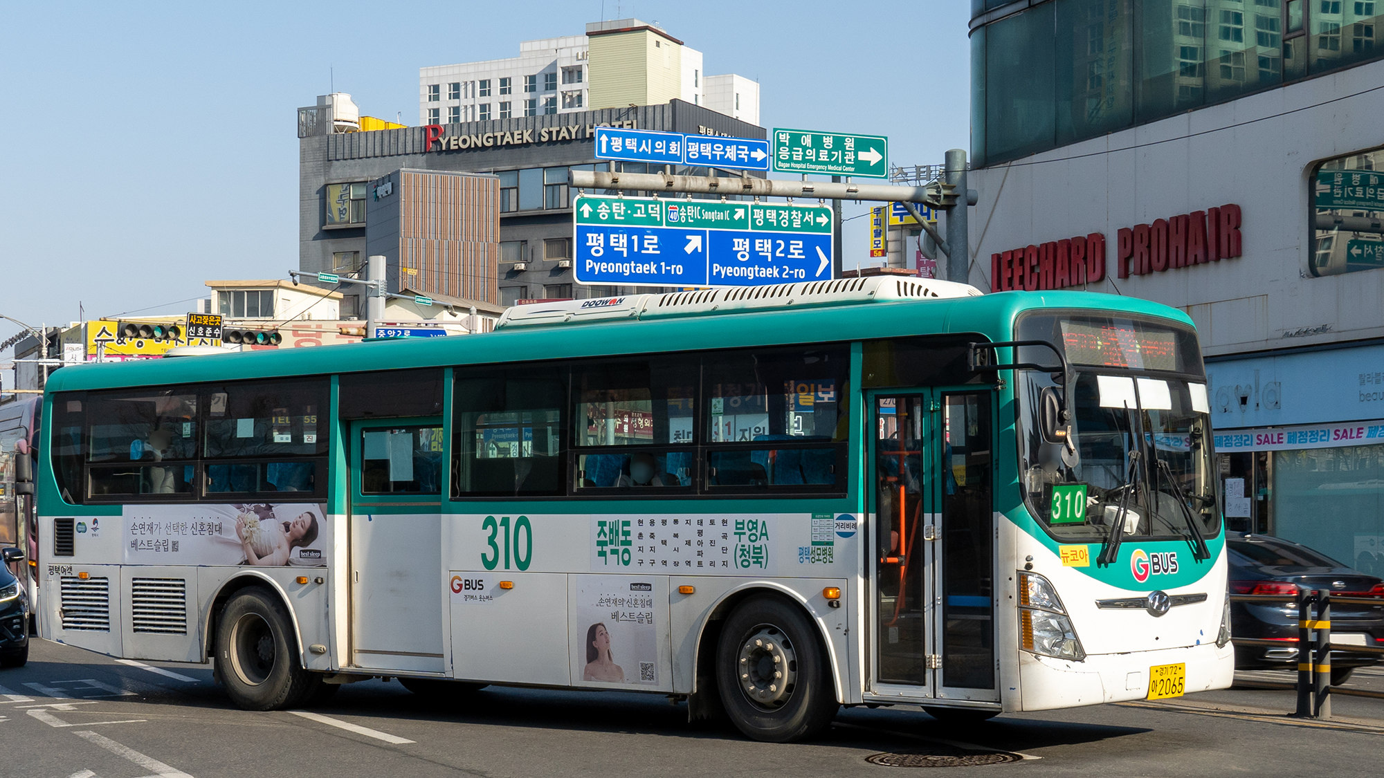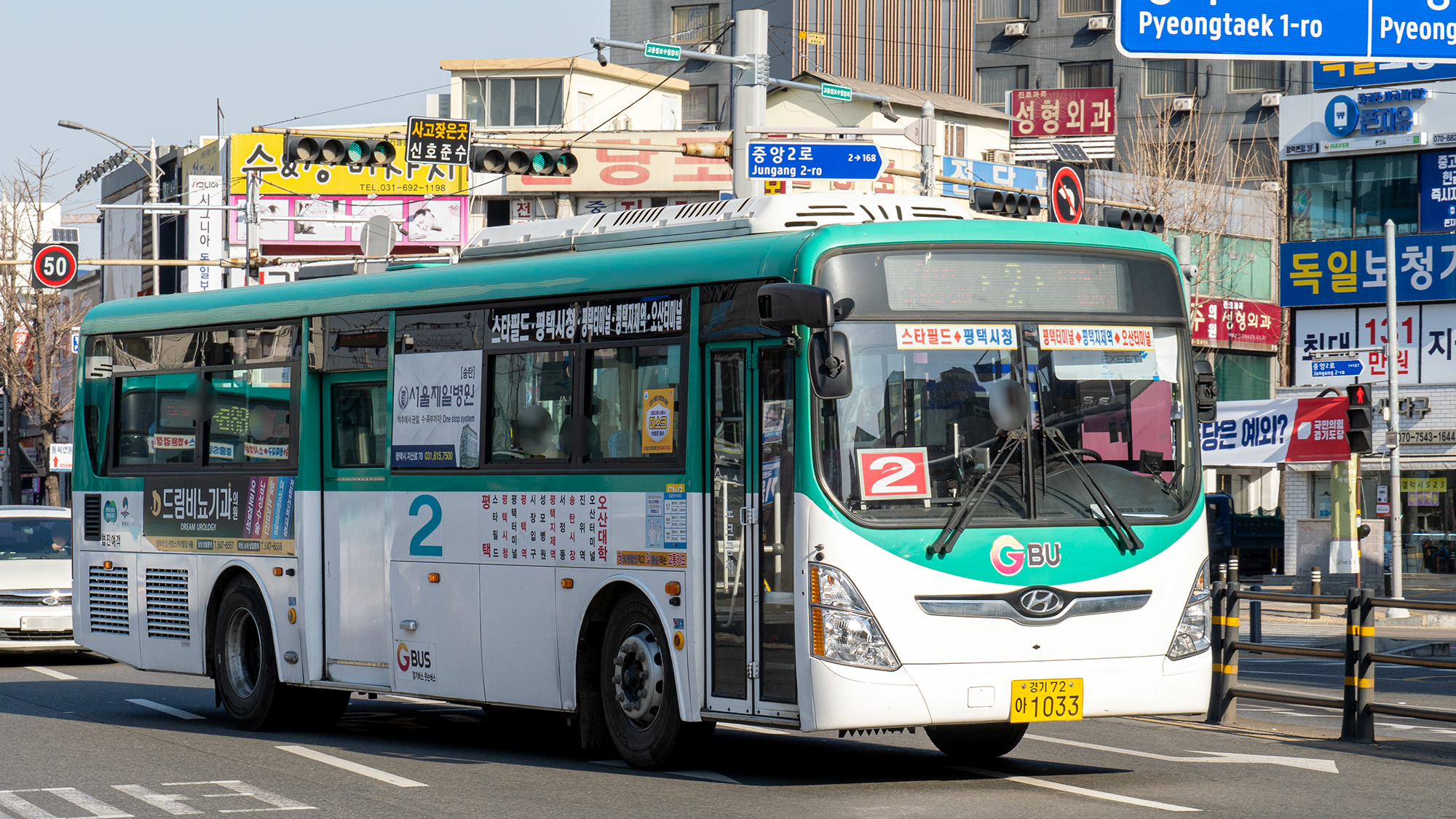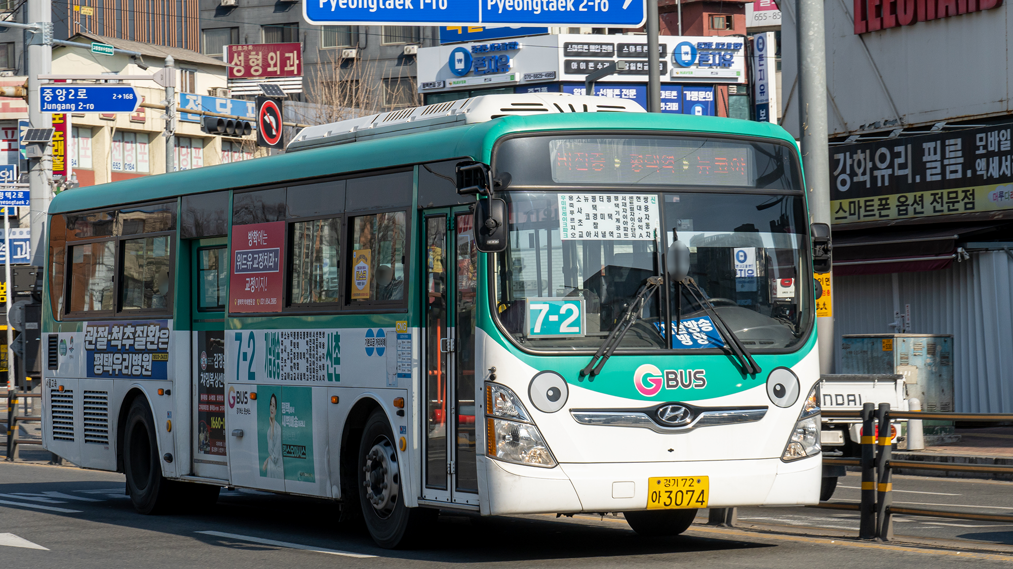 2번 시리즈는 신차 몰빵 대상 노선이었으며, 현재는 일렉시티 우선 투입 노선이라고 합니다. 평택에서 시내버스 수요 1, 2등은 2번과 2-2번이라고 하니, 할 말은 없긴 합니다. 또, 승객이 많아 입석 승객을 위한 힙레스트 옵션이 있는 일렉시티를 투입하는 것이 최고의 선택이기도 하죠. 장거리를 가야 하니까 변속이 필요 없는 전기버스가 기사님에게는 또 좋은 장점이 되고요. 현재 기준으로 일반 차량과 전기 차량은 약 2:1 비율로 운행하고 있습니다.