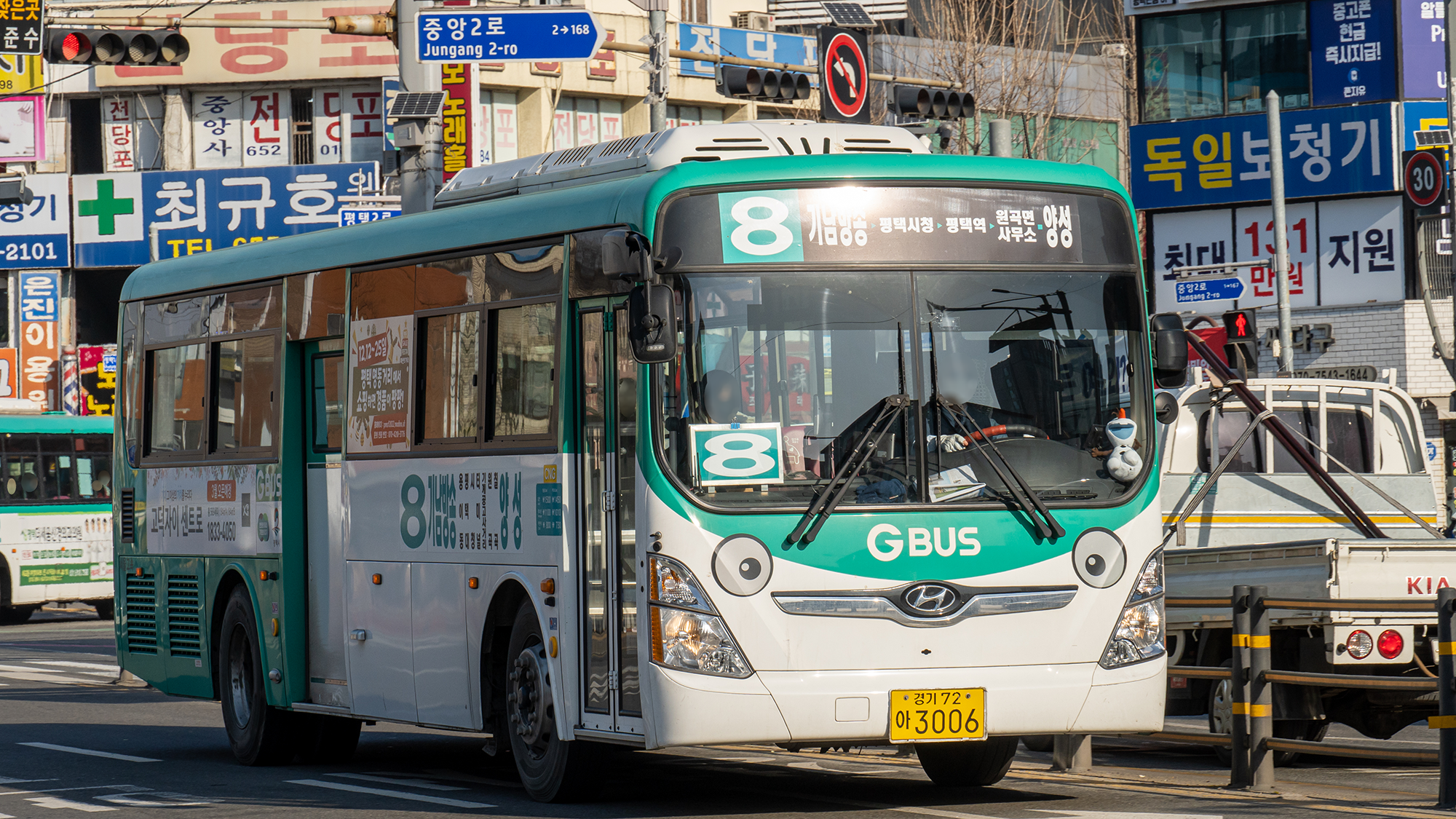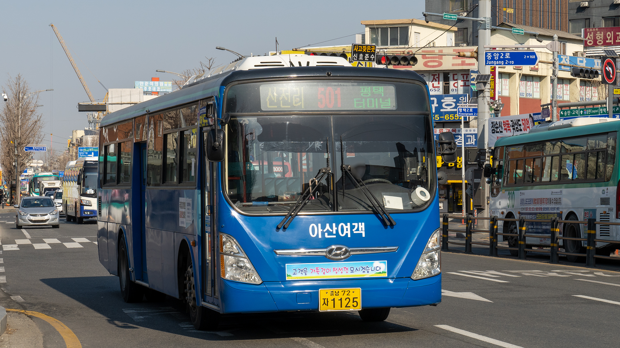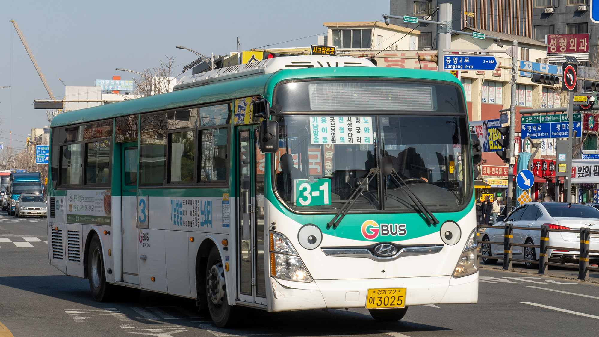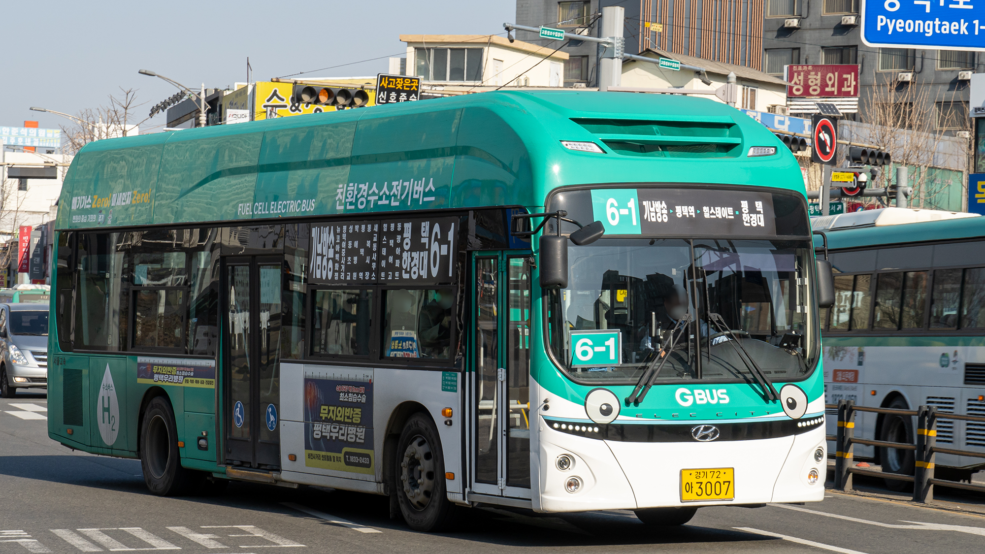 2번 시리즈는 신차 몰빵 대상 노선이었으며, 현재는 일렉시티 우선 투입 노선이라고 합니다. 평택에서 시내버스 수요 1, 2등은 2번과 2-2번이라고 하니, 할 말은 없긴 합니다. 또, 승객이 많아 입석 승객을 위한 힙레스트 옵션이 있는 일렉시티를 투입하는 것이 최고의 선택이기도 하죠. 장거리를 가야 하니까 변속이 필요 없는 전기버스가 기사님에게는 또 좋은 장점이 되고요. 현재 기준으로 일반 차량과 전기 차량은 약 2:1 비율로 운행하고 있습니다.