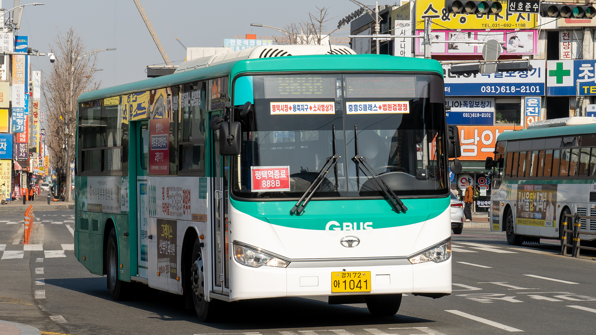 1041호는 앞유리가 3분할이 아닌 2분할로 되어 있는 특징이 있습니다. 출고했을 때는 96-1번에 투입했지만 가스 충전을 위해 공차 회송을 안중에서 용이동까지 가는 것은 너무 낭비였기 때문에 96-1번에는 다시 디젤 차량이 투입되었습니다.