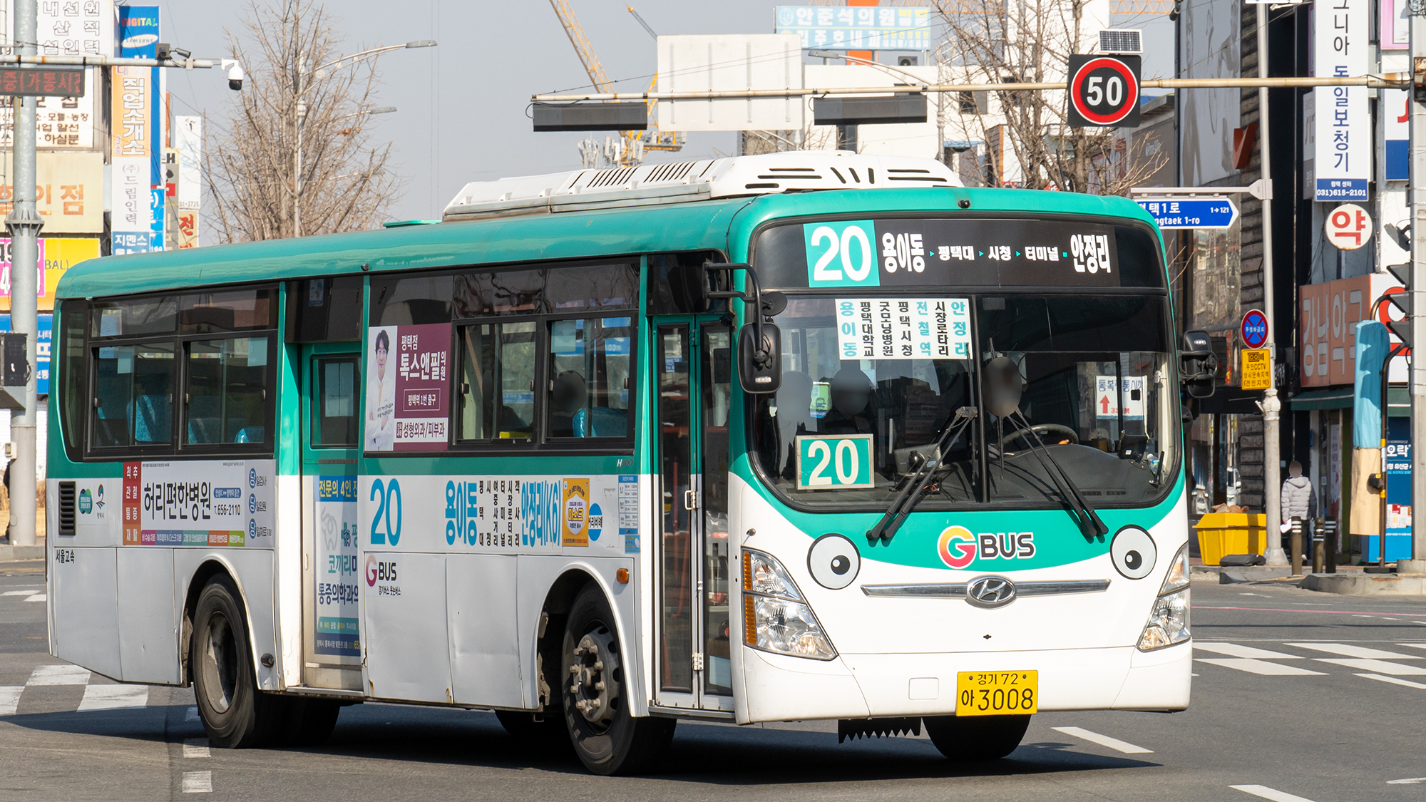 20번은 15번의 단축형 노선이라고 볼 수 있겠습니다. 객사리까지만 운행하며, 배차간격도 짧아 수요가 많은 편이죠. 평택에서 유일하게 공동배차하는 노선이며, 저상 차량도 존재합니다.