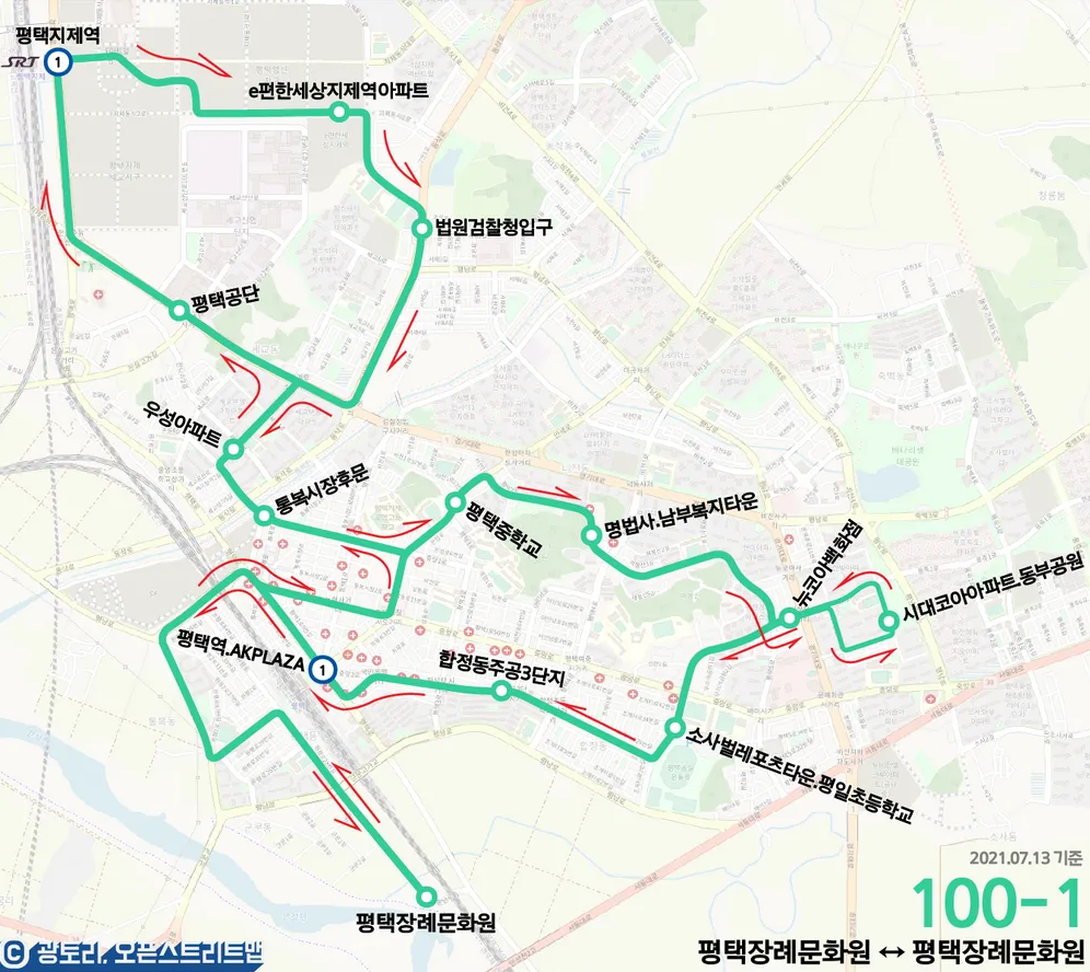 평택의 몇 안 되는 순환 노선 중 하나인 100-1번입니다. 이마트로 연장되기 전까지는 그럭저럭 괜찮은 노선이었는데 이마트로 연장하고 점점 대체 노선들이 생기면서 현재는 인지도가 떨어져 아는 사람들만 타는 노선이 되어버렸습니다... 노선도를 만들 때도 고생했던 기억이 나네요.