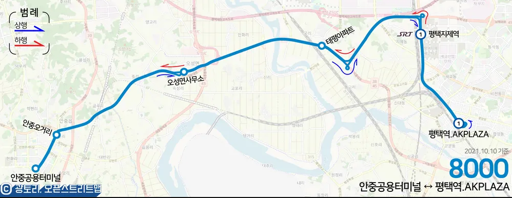 80번의 안중 - 평택역 구간 급행 노선으로 아래 노선도에 명시된 정류장만 정차합니다.