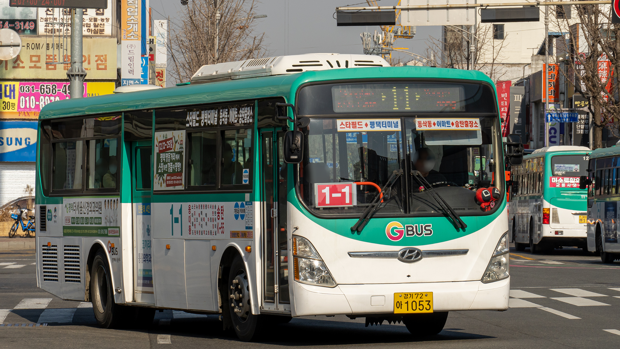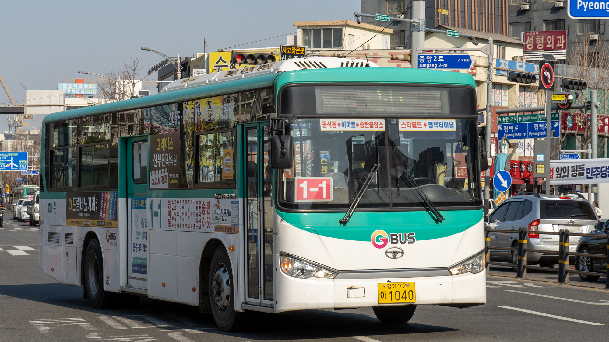 배차간격이 들쭉날쭉해서 아쉬운 노선이긴 합니다만, BLU에 초록색 '시내순환'이라고 쓰여 있으면 1바퀴 더 돈다는 말이고, 빨간색 '평택역종료'는 평택역까지만 운행하는 차량이라는 표시입니다. 신박한 운행 방식의 순환 노선이죠.